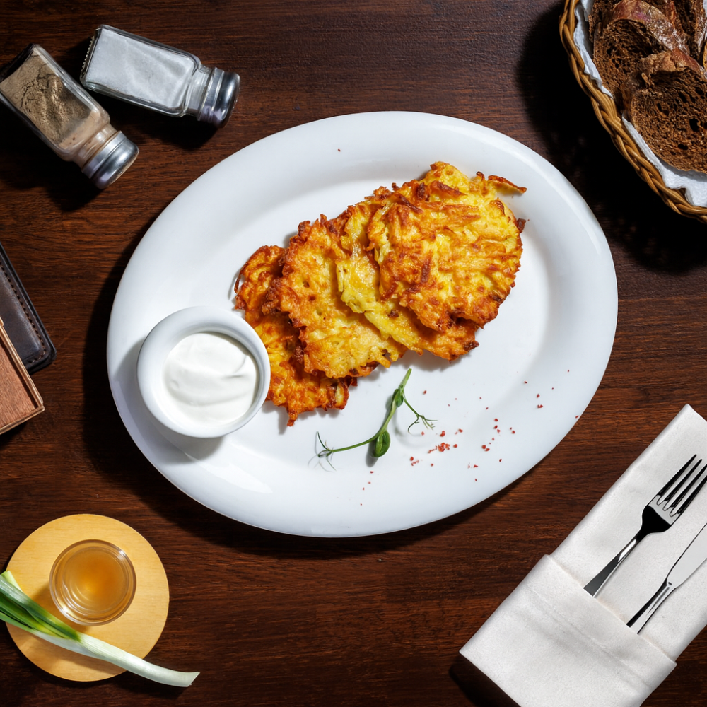 Классические драники со сметаной.