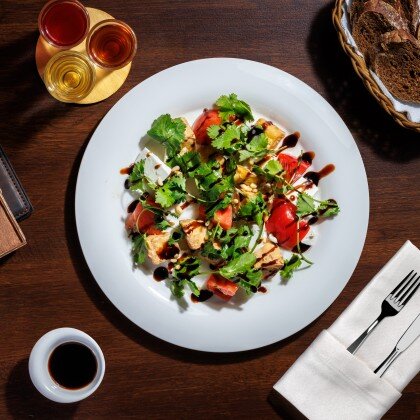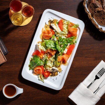 САЛАТ С ЛОСОСЕМ, ГРЕЙПФРУТОМ И КАМАМБЕРОМ